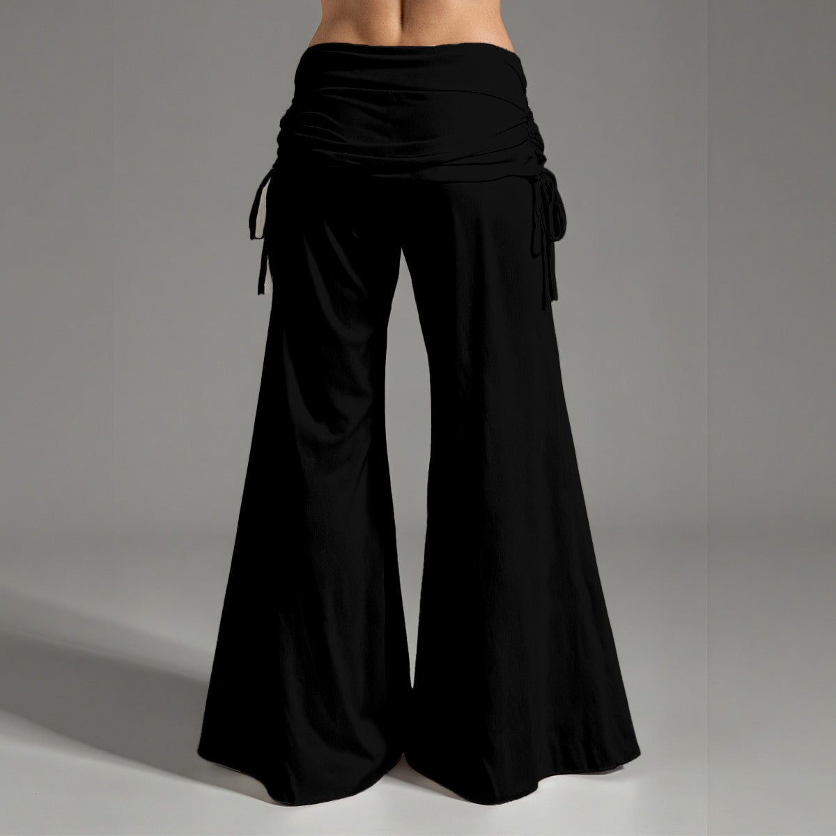 These high-waisted wide-leg pants feature a fold-over waistband and adjustable pleats on the sides for a snug fit and a slim silhouette. The wide-leg cut allows for a flowy, airy feel, while the soft fabric is lightweight and breathable for all-day comfort. Perfect for casual looks, daily outings, or teamed with heels, these pants are both stylish and casual, making a statement.